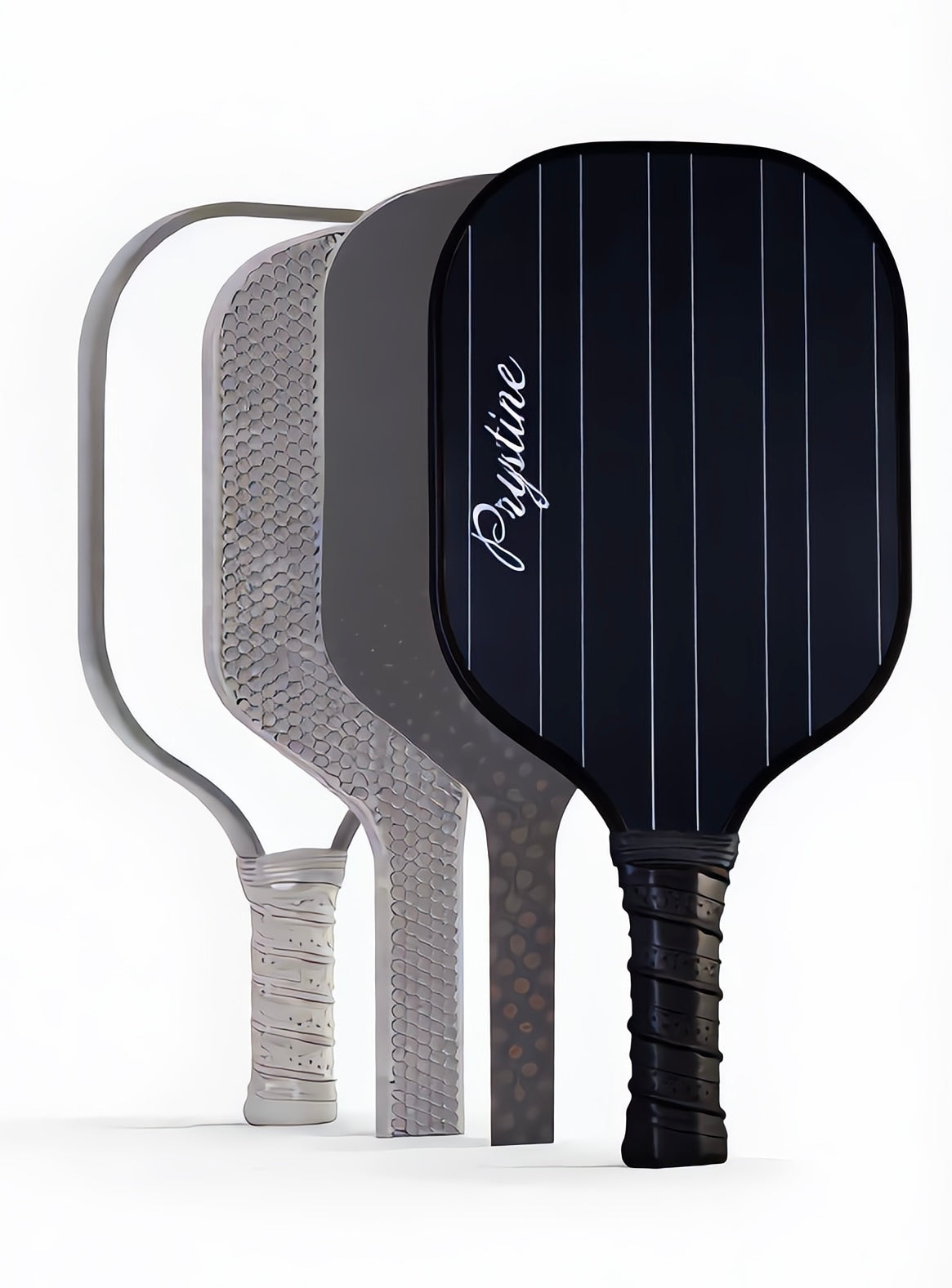The Prystine paddle is built to be lightweight for faster reaction times and reduced arm fatigue during long games. Exact weight specs are listed on each product page.